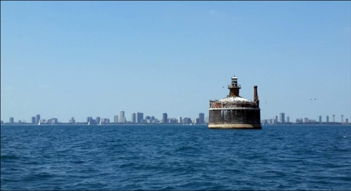 Chicago’s first water crib was constructed in 1865 and designed by engineer Ellis F. Chesbrough to help deliver clean water to the city. At that time, Chicago was dumping its sewage directly into the lake. By locating the water intake two miles out into the lake and connecting it via a deep tunnel to a pumping station and water tower on the shore (the famous old Chicago Water Tower and Pumping Station on Michigan Avenue), clean water was carried to the city. In the years between 1865 and 1935, the city constructed eight additional water cribs, all considered major engineering feats of their day. Of these, only six remain standing, and only two are still in active use. For many years, the city had 24-hour staffing of the water cribs by isolated crews who lived and worked on them. The cribs that are still in use now are staffed remotely.