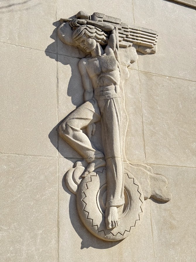 Some of these union halls were purpose-built, including the Painters District Council #14 at 1456 W. Adams Street and the Workers United Hall at 333 S. Ashland Avenue. Others occupy existing buildings with rich histories that were adapted and reused, such as the Fraternal Order of Police Chicago Lodge No. 7 at 1412 W. Washington Boulevard, which was originally the R. C. Wieboldt & Co. Office Building. The Chicago Federation of Labor Building at 600 W. Washington Boulevard is in the former West Chicago Street Railroad Cable Car Powerhouse. The United Electrical Workers Union was formerly at 37 S. Ashland Avenue, a building known for its massive mural “Solidarity” that they are trying to save and relocate to other buildings. Still others have been repurposed from union halls to other functions, such as the Amalgamated Meat Cutters and Butcher Workmen of North America Building at 2800 N. Sheridan Road, which was rehabilitated as the Stone Medical Center of St. Joseph Hospital. These union buildings are distinguished by their varied