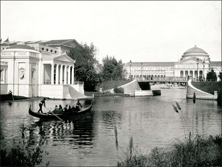 Architects, engineers, and planners worked together to turn the swampy area into the “White City.” Olmsted, Henry Sargent Codman (1863-1893) of Olmsted’s firm, Daniel Burnham of Burnham and Root (later D.H. Burnham & Company), and Charles B. Atwood (1849-1895) of Burnham’s firm, embarked on planning the layout for the Exposition. Rather than design a traditional park landscape, they conceived of a spectacular seascape. Olmsted approached landscape not simply as scenery, but as a system. He used Lake Michigan, along with a series of man- made pools and canals, to form a setting with islands and raised terraces where the buildings would stand. Moreover, he introduced over a million plants to build a diverse and resilient environment. Despite objections from Louis Sullivan and other architects of the “First Chicago School” of architecture, Burnham chose to strongly