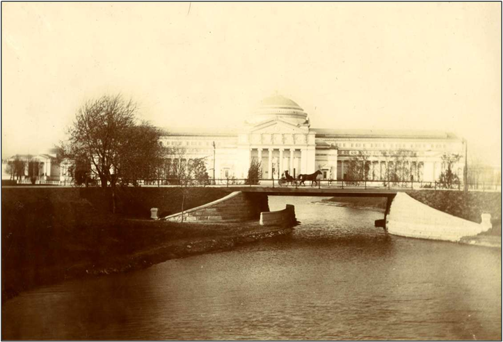 After the six-month Exposition concluded in late October of 1893, the South Park Commissioners soon began efforts to turn the site back into parkland. Jackson Park was again redesigned by Olmsted’s firm with aims to retain the picturesque qualities of the World’s Fair and serve as a space for passive recreation. The redesign of the park was completed between 1895 and 1906. The Exposition had been conceived as a temporary attraction, so most of its buildings were constructed using a plaster-like material known as “staff,” which was designed to resemble stone. These structures were later either destroyed in the fires of 1894 or demolished. Only a few structures were preserved, most notably the Palace of Fine Arts, which had fireproof masonry vaults. It was repurposed by Burnham to house the Field Columbian Museum, which displayed anthropological and cultural artifacts that had