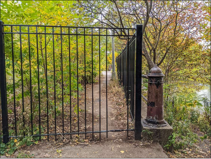 Unfortunately, the Darrow Bridge has been closed to pedestrians since 2013, when the Chicago Department of Transportation (CDOT) erected a permanent fence to block access. The banks of the bridge are overgrown with saplings and weeds, the pavement is cracked, and the Burnham and Root-designed railing is increasingly oxidized. The historic structure is badly in need of repair, despite the continuous and admirable efforts by local advocates who have been calling for restoration for over twenty years. Preservation Chicago calls for the City of Chicago and CDOT to complete all necessary repairs and historic rehabilitation of the Darrow Bridge, restoring access to this significant piece of Chicago’s history and its legacy city parks.
