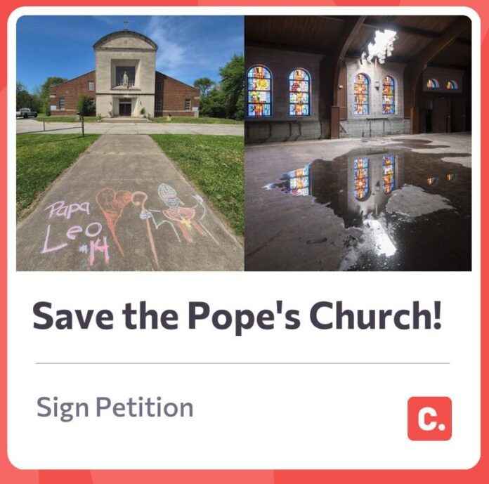 Pope Leo XIV’s Childhood Church and School, St. Mary of the Assumption church is now vacant and with a large hole in the roof.