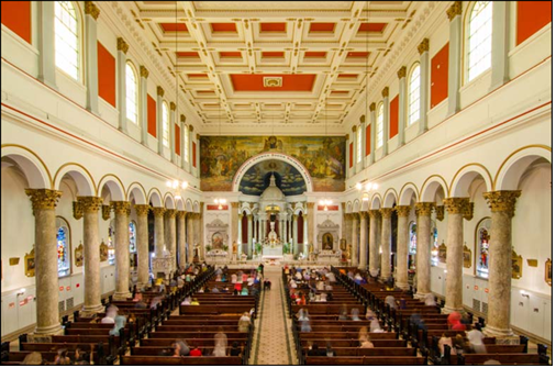 Holy Family Church’s history is very much aligned with Chicago’s history, growth, changes and challenges over 162 years since the construction of the church began 24 years after the city’s 1837 incorporation. Founded by Rev- erend Arnold Damen, S.J. (Damen Avenue’s namesake), the church and its contents survived the Chicago Fire of 1871. It is the only grand-scale semi-public building and interior to remain unchanged and unaltered from the ear- liest days of the city’s history. The church even predates the Old Chicago Water Tower and Pumping Station on Michigan Avenue, one of Chicago’s most treasured civic Landmarks.