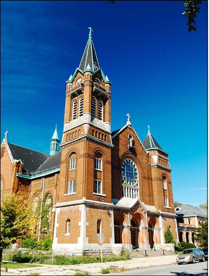 The parish of St. Stanislaus Kostka opened in 1867, and in 1871 Bishop Foley put the Resurrection Fathers in charge of the growing parish. As the flow of Polish immigrants continued into the neighborhood, a larger church was needed. The cornerstone of the present church building was laid in 1877, and the church was dedicated in 1881. It was designed by Patrick Keeley, a New York architect with a prolific careers which included the design of over 600 churches across the United States.