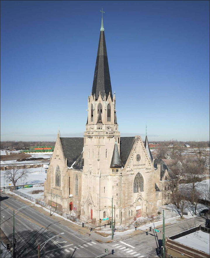 Historic churches are some of both the oldest and finest examples of architecture throughout Chicago’s neighborhoods. They are part of the fabric of the city and beloved landmarks that provide a direct connection to a neighborhood’s past. The prominent ecclesiastical building at the corner of Princeton Avenue and 59th Street in Englewood, originally St. Martin De Tours Church, is an outstanding example of the city’s architectural legacy. St. Martin is reflective of a time when Chicago was famous for having churches on nearly every block, with one for nearly every ethnic group and immigrant community.