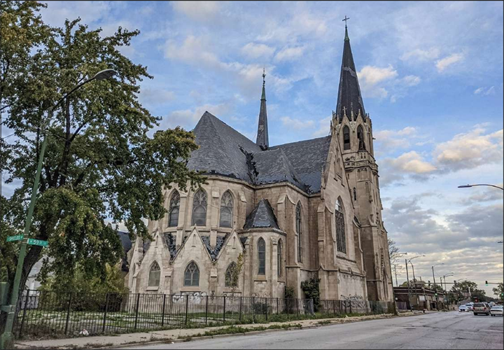 Historic churches are some of both the oldest and finest examples of architecture throughout Chicago’s neighborhoods. They are part of the fabric of the city and beloved landmarks that provide a direct connection to a neighborhood’s past. The prominent ecclesiastical building at the corner of Princeton Avenue and 59th Street in Englewood, originally St. Martin De Tours Church, is an outstanding example of the city’s architectural legacy. St. Martin is reflective of a time when Chicago was famous for having churches on nearly every block, with one for nearly every ethnic group and immigrant community.