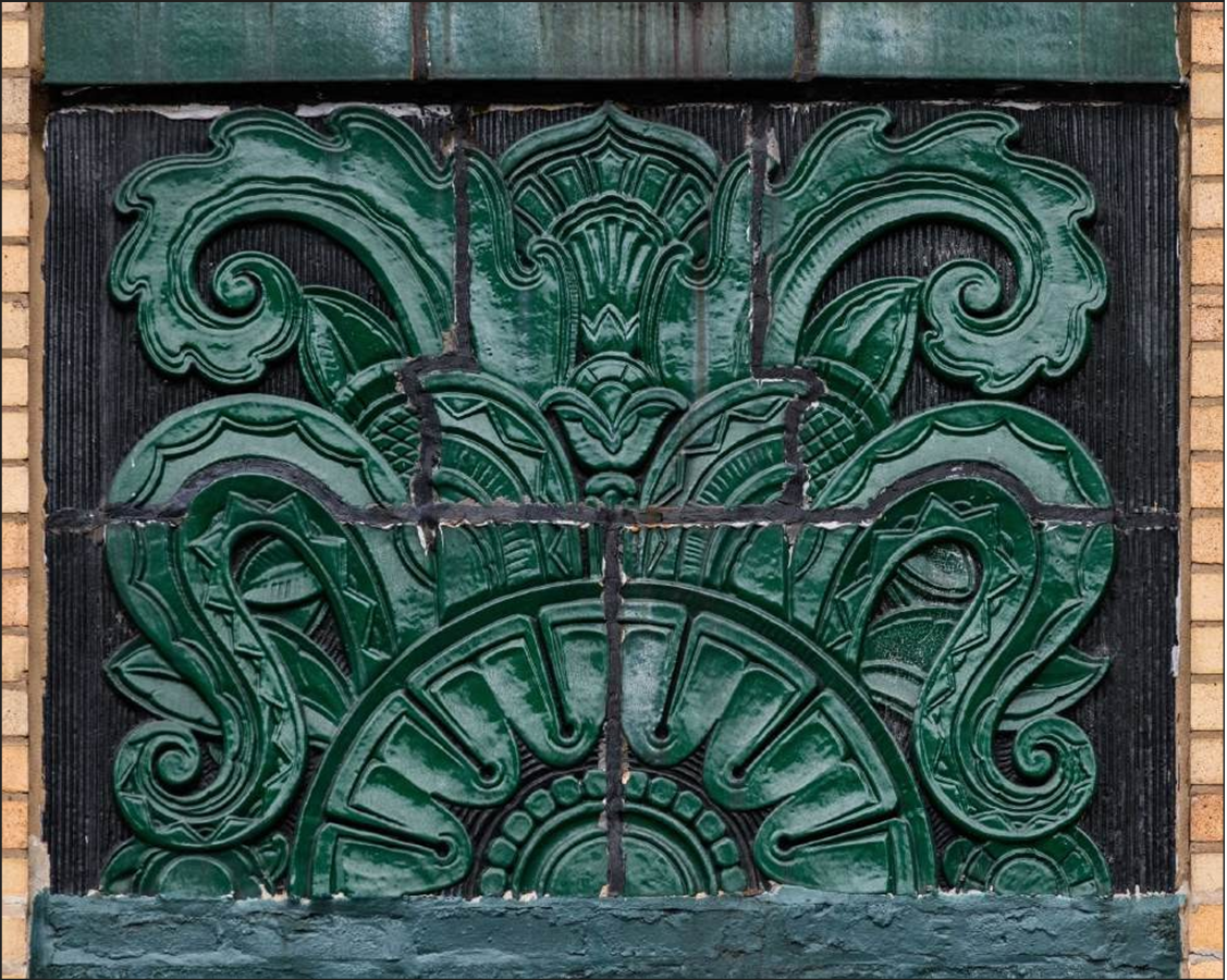 The grand movie palaces emerged in the 1920s in Chicago and terra cotta was used extensively to create whimsical, exuberant ornament. Additionally, versatile and affordable terra cotta was used widely throughout Chicago’s neighborhood commercial corridors to provide additional ornament and detailing to vernacular commercial buildings.